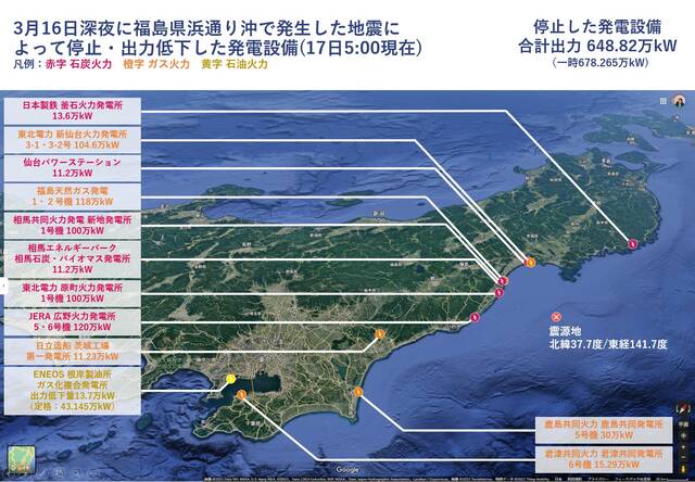 16日深夜に発生した地震のため一部の火力発電所が止まっている上、低温のため電力使用量が増加したため。