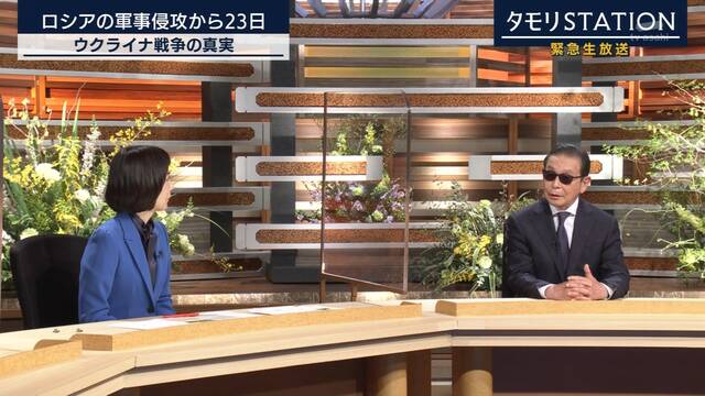 番組は「ウクライナ戦争の真実を総力で取材!」とのタイトルで、ロシアによるウクライナ軍事侵攻の現状を紹介。テレビ朝日の大下容子アナウンサーが進行役になり、報道ステーションの大越健介キャスターによるウクライナの隣国ボーランドからリポートや、両国指導者の素顔や軍事侵攻の背景などを専門家を交えて報じた。