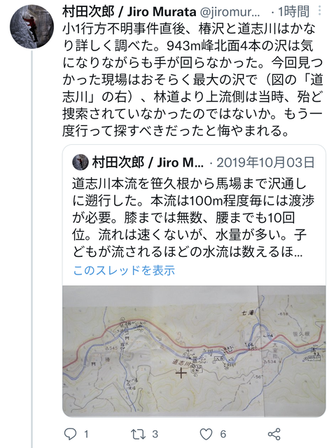 靴も見つかったって言うし初期捜索のミスですね。右手の林道に警察犬放てば生きている状態で見つけたかも。
