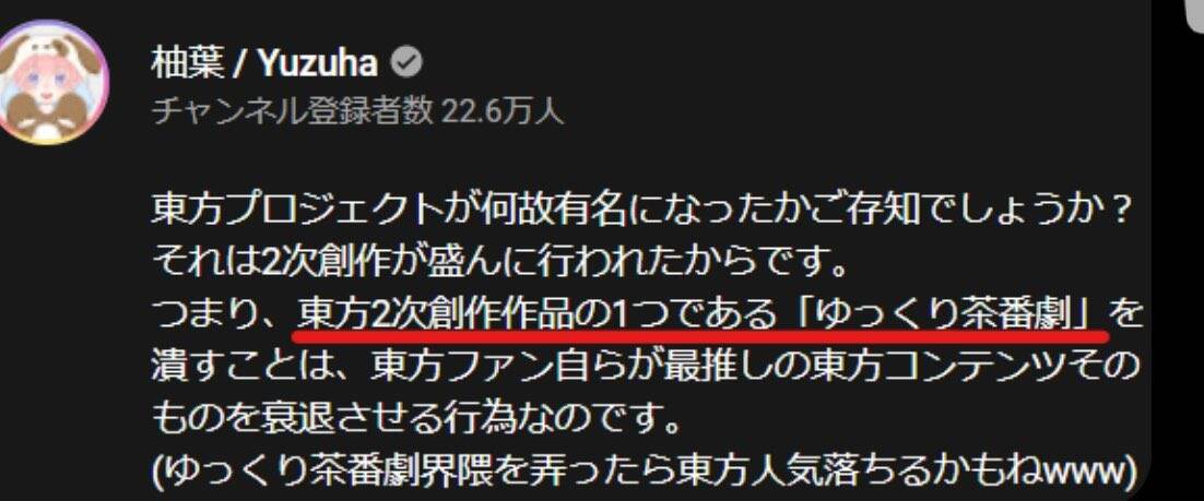 柚葉さんは東方projectニコニコ動画UUUM相手に裁判頑張って下さい